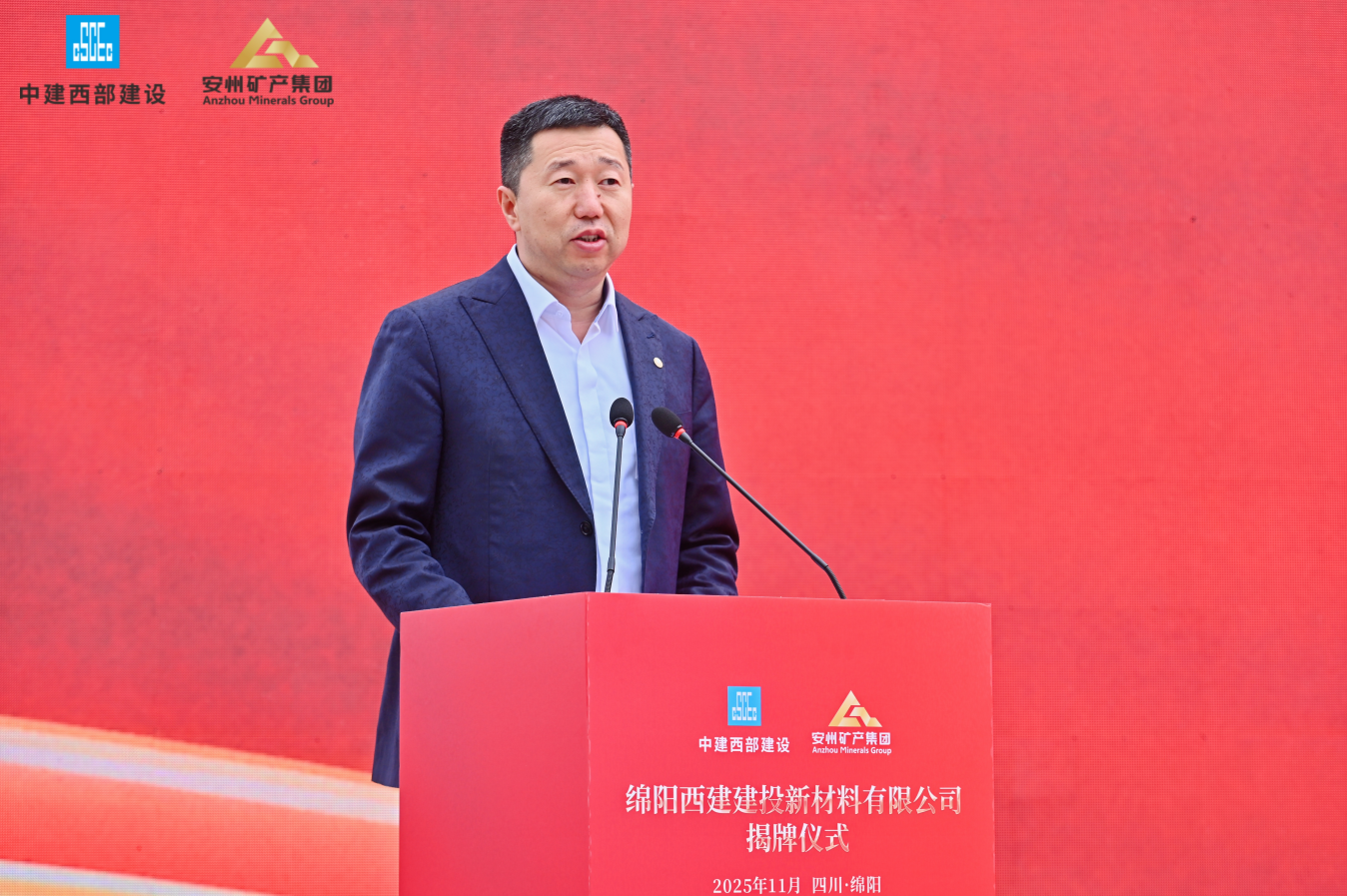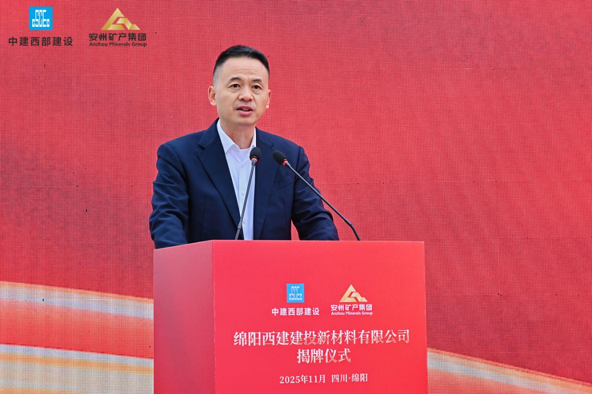 11月18日,綿陽安州礦產(chǎn)資源集團有限公司(簡稱“安礦集團”)與中建西部建設(shè)集團第一有限公司(簡稱“中建西部一公司”)共同出資設(shè)立的綿陽西建建投新材料有限公司(簡稱“西建建投”)在安州正式揭牌。此次揭牌是央地國企強強聯(lián)手、優(yōu)勢互補的合作典范,不僅為綿陽綠色建材產(chǎn)業(yè)發(fā)展與“無廢城市”建設(shè)注入強勁動力,也開啟了雙方共創(chuàng)共贏的嶄新篇章。中建西部一公司黨委書記、董事長徐志飛,安礦集團黨支部書記、董事長袁波出席揭牌儀式并致辭。